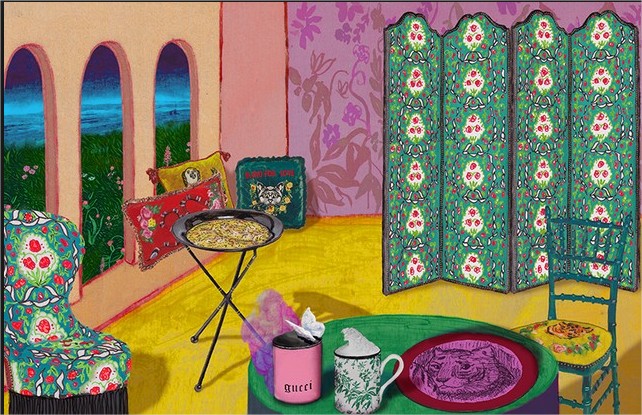 O romantismo e as cores vivas de Alessandro Michele estarão disponíveis em almofadas, velas e outros objetos a partir de setembro de 2017!