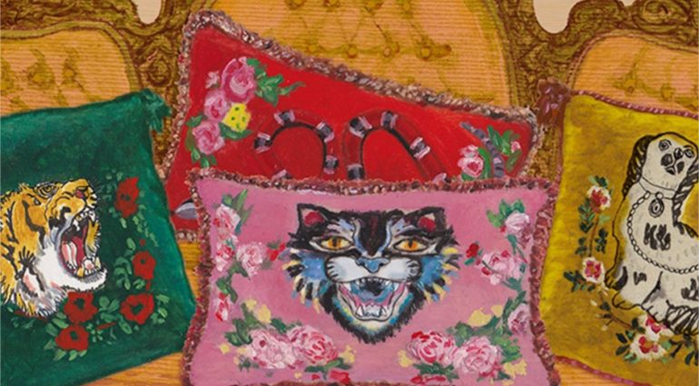 O romantismo e as cores vivas de Alessandro Michele estarão disponíveis em almofadas, velas e outros objetos a partir de setembro de 2017!